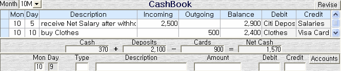 In general a cashbook is to keep records of cash incomings and outgoings. In our products the cash is defined as including cash, deposits, credit cards and all other finance to treat them together in the cashbook. More...